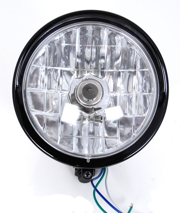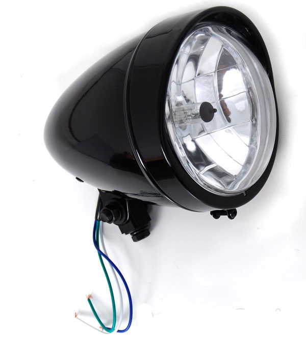 - Gloss Black Headlight with Visor Light 5.5" Halogen fits Honda Yamaha Suzuki Kawasaki Motorcycle